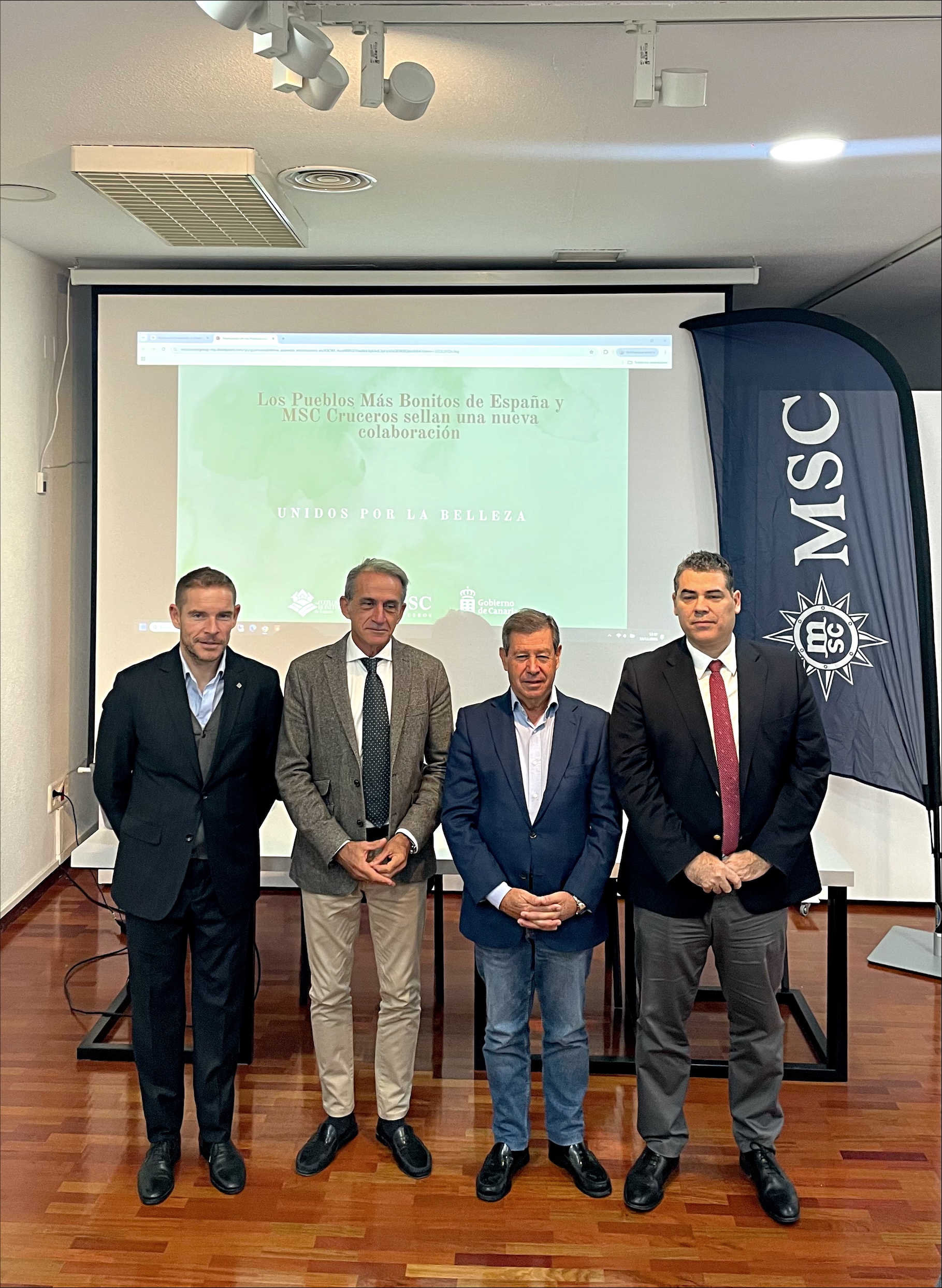 El acuerdo se ha firmado oficialmente en un acto institucional celebrado esta mañana en la sede del Gobierno de Canarias en Madrid, que ha contado con la presencia de Francisco Mestre, presidente de la asociación “Los Pueblos más Bonitos de España”; Héctor Mateo Castañeyra, director general de Infraestructura, Sostenibilidad y Calidad Turística del Gobierno de las Islas Canarias; Fernando Pacheco, director general de MSC Cruceros en España; y Juan Francisco Perera, presidente regional de la zona sur y alcalde de Tejeda (Gran Canaria).