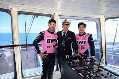Coureurs van het BWT Alpine Formula One Team en VIP-gasten kregen de gelegenheid om het schip te verkennen voordat zij zich verzamelden in de Panorama Lounge, een theater omkaderd door raampartijen van vloer tot plafond, met een adembenemend uitzicht over de oceaan en een indrukwekkend decor van de haven van Barcelona en het nieuwe, moderne cruise-terminal van MSC Cruises, voor de wereldwijde onthulling van de nieuwste F1-bolide van het team.